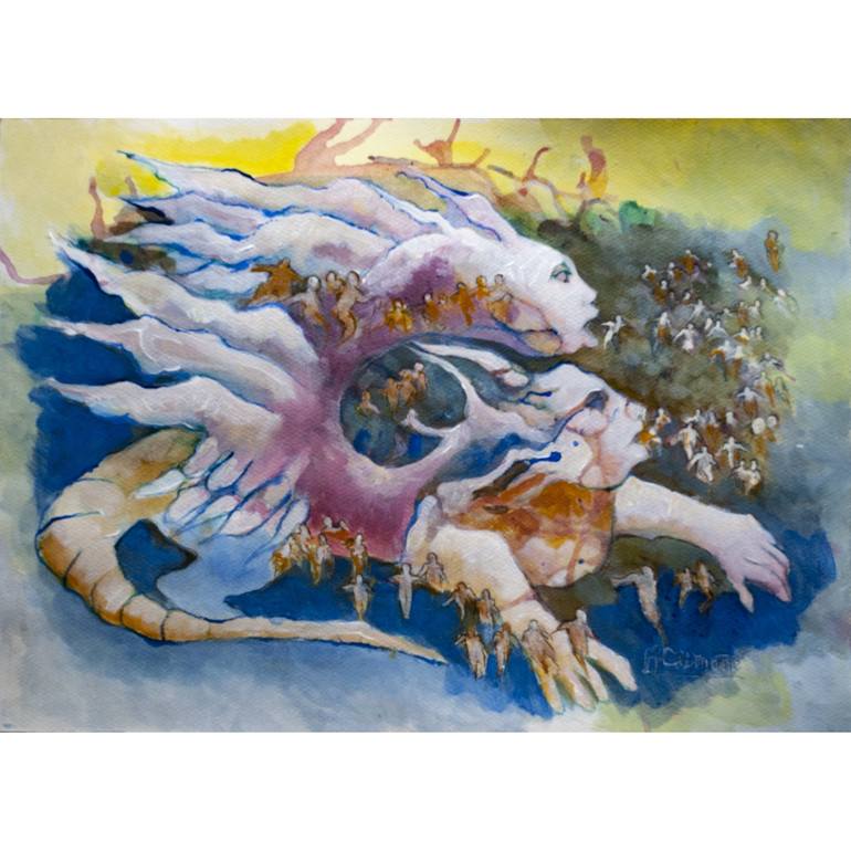 Animales y peces imaginarios son protagonistas de un génesis, de ellos y del mar nace la vida, brotan de sus bocas multitudes que inundan el espacio y se asientan en un nuevo territorio paralelo al cual es posible acceder sólo a través de los sueños
