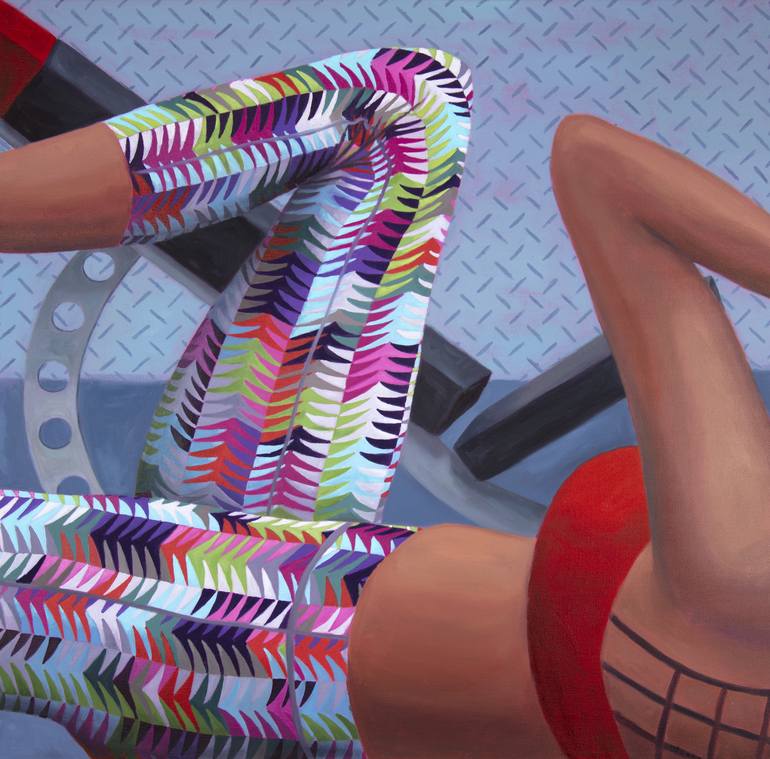 In my work, I see the gym as a place where everyday antics and behaviors are amplified in a stage-like environment where there is a hyperawareness of our bodies in a public space. Exploring the politics of looking through both male and female gazes, I’m interested in exemplifying the strangeness of the body, and the peculiarity of certain gym exercises and the awkward, compromising, sometimes sexual positions they put people in. My works hinge on the contradiction that I am an active participant of #gymlife, while also questioning its variables. By telling gym stories through serious yet comically empathetic visual narratives, my work is meant to bring up conversation about gender issues, body politics and trends, competition, the machinic-like work we do, and the propaganda of progress in other spheres of our lives.