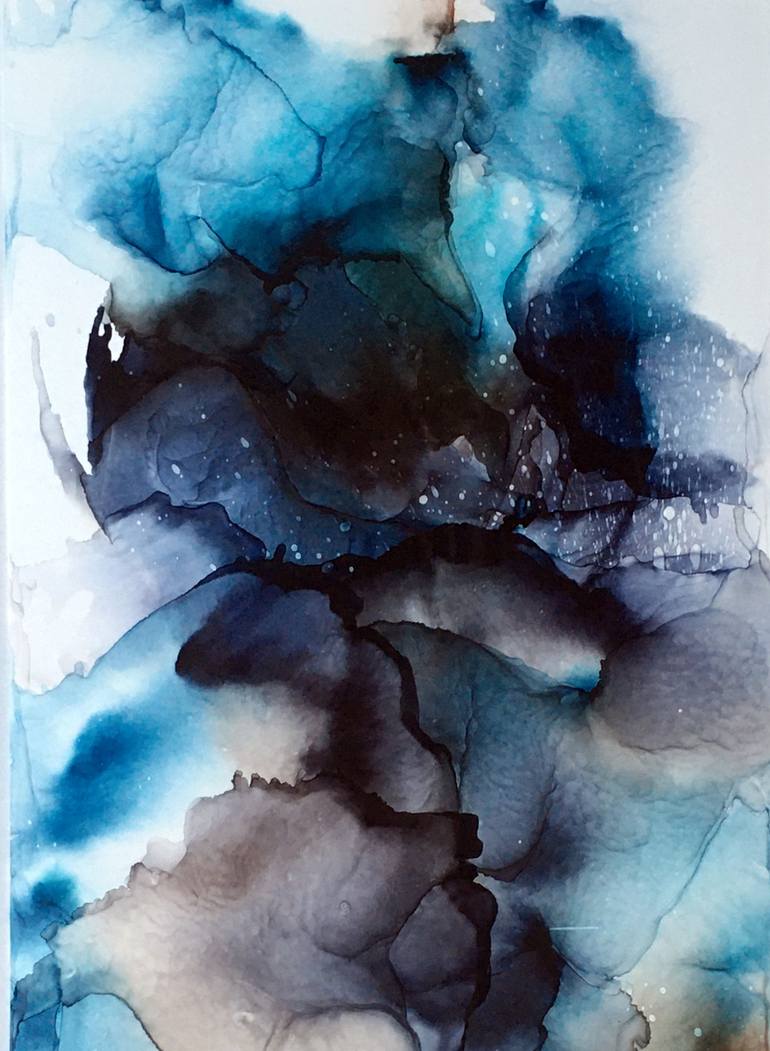 Original abstract painting on special drawing plastic. The artwork is not framed.This is an original inc painting. Inspired by this incredible blue color in the central part of this painting. I love the simplicity of this painting, and the ambiguity. There is a feeling of real space, and that the...