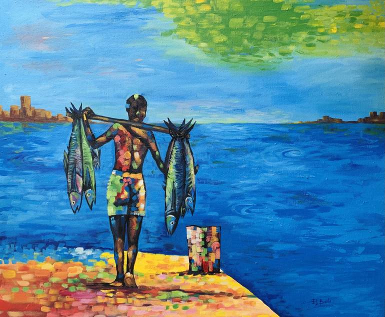 Original acrylic painting on canvas. Titled: big catch