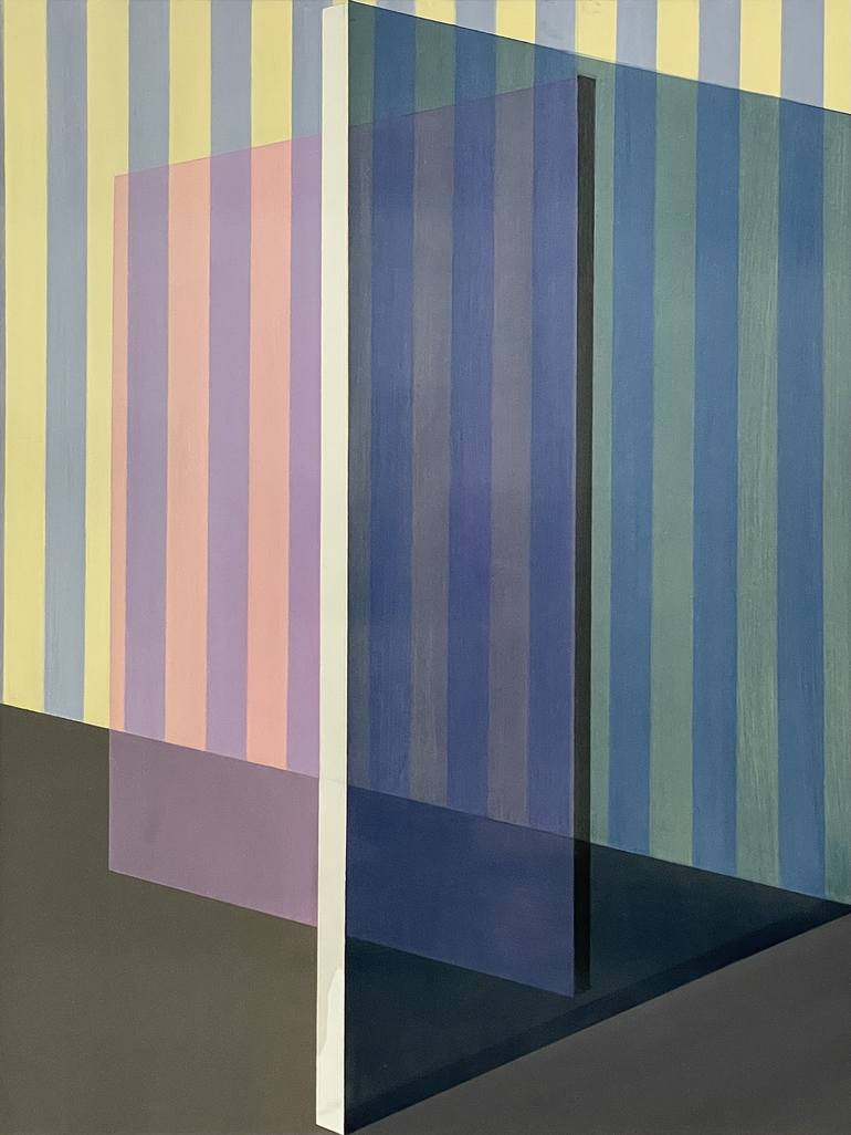 My art presents unusual and dramatic abstract compositions of structures and surfaces. The paintings are built in many layers, rendered in oil paint, on hard cradled panels. They are purposely meant to give the eye a treat wandering around and through the composition. Here, two translucent panels in...