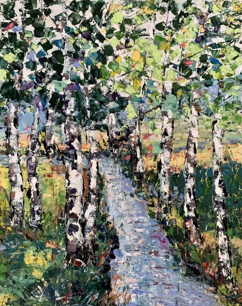 Birch Trees By River Impasto Oil Painting On Canvas *Title: „Birch trees by the river“ *Size: 15.7"x 19.7" [40 x 50 cm] *Original handmade oil painting on canvas by brush and palette knife. *Made by me - Vilma Gataveckiene. This is not a copy or a print. *Signature on the front and on...