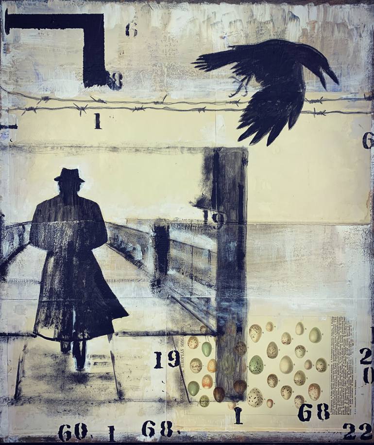 Mixed Media on canvas, stretched and ready to hang. Signed on the front. This artwork comes with an external black timber frame. This painting is a tribute to my late friend Leonard Cohen and a song he wrote known as "Bird on the Wire". I knew Leonard from Hydra island, Greece where he wrote this s...