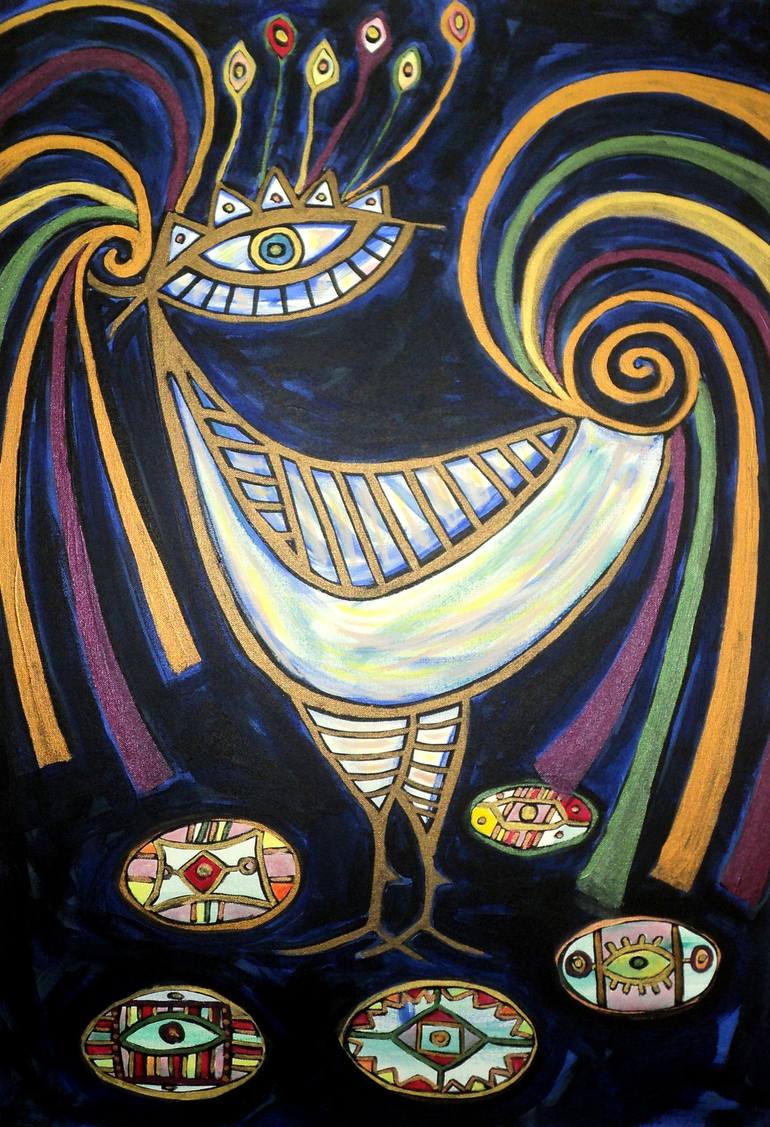I was inspired by Iranian symbolic art and the new year, The bird has eyes like humans and is very alone. it hasn't enjoyed of new year ceremony because of some personal reasons.