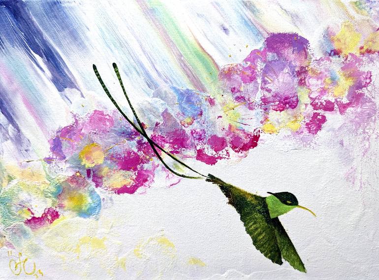 Bird kolibri original oil painting by Yulia Zuk Original hand painted fine art one-of-a-kind Title "Birdy" Materials: oil paints, canvas Inspired by Birdie Cafe in Haifa - a little island of Europe. instagram com/birdy.cafe.bar/ Colourful painting would be a great addition to your painting col...