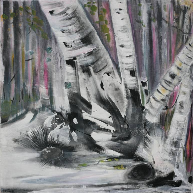 Birch forest in detail, pigments and acryl on canvas