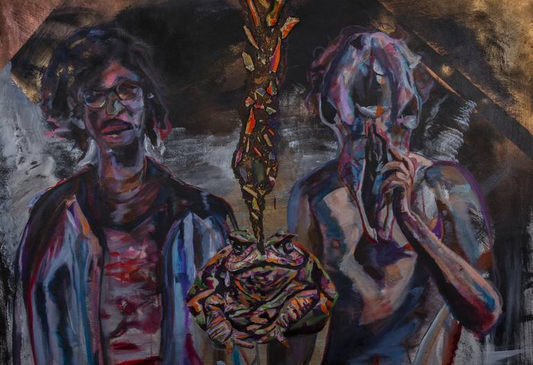 Artist Statement Wyatt Pottorff strives for aesthetic beauty while capturing chaos. His works are characterized by metaphorical figures that represent intense emotions and swirling swaths of paint that signify changing perspective. Painting allows him to re-contextualize complex life moments and imbue them with a sense of gratifying simplicity. He hopes these images convey an embracement and adoration for the ever changing and disordered world that we live in. Bio Wyatt James Jackson Pottorff grew up in a small town in New Mexico. In Deming, Wyatt spent his early years doodling, painting, climbing on roofs and exploring derelict buildings and the desert with friends. His art often depicts altered worlds, animals and fierce characters. Stylistically his work is most influenced by Surrealist, Abstract Expressionist and Futurist art movements. In addition to a studio practice, Pottorff also manages a Southwestern clothing brand, Desert Funk. He is a graduate of the University of New Mexico’s studio art program, and has exhibited in several galleries including the Shockboxx Gallery in LA, Site Santa Fe in Santa Fe, NM as well as the Cameron Art Museum in Wilmington, NC. Currently he lives and works in Portland, Oregon.