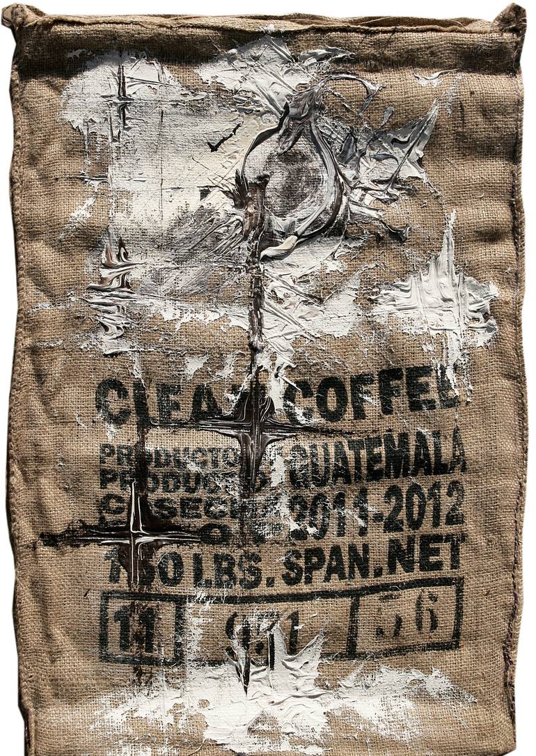 72 x 96 cm, acrylic on sack cloth 'Black Coffee' Series Coffee is a plant, a drink and also a social pattern. The word “coffee” meaning each a plant, the seed and the drink made out of that plant, gained a place between social codes within the ages and became a tool for communication and an indic...
