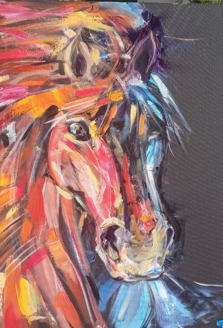 Black Flaming Horse. Original oil painting on canvas Horse Abstract Wall art. Animal portrait, custom art available. A gift idea for horse lovers. 💝 I am such a horse lover, this is my other passion after art and painting. Touching a horse was my greatest childhood dream. After I got a super chanc...