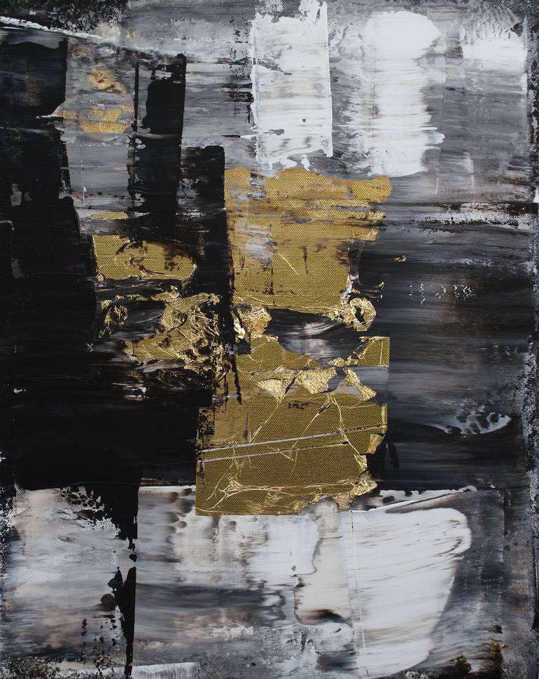 Mixed media on canvas (Acrylic, metal leaf gold) Edges painted black, Signed/dated on the back
