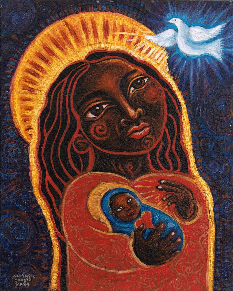 The Black Madonna awakens hope and the promise of the awakening of the Inner Christ light. This is a framed acrylic painting.