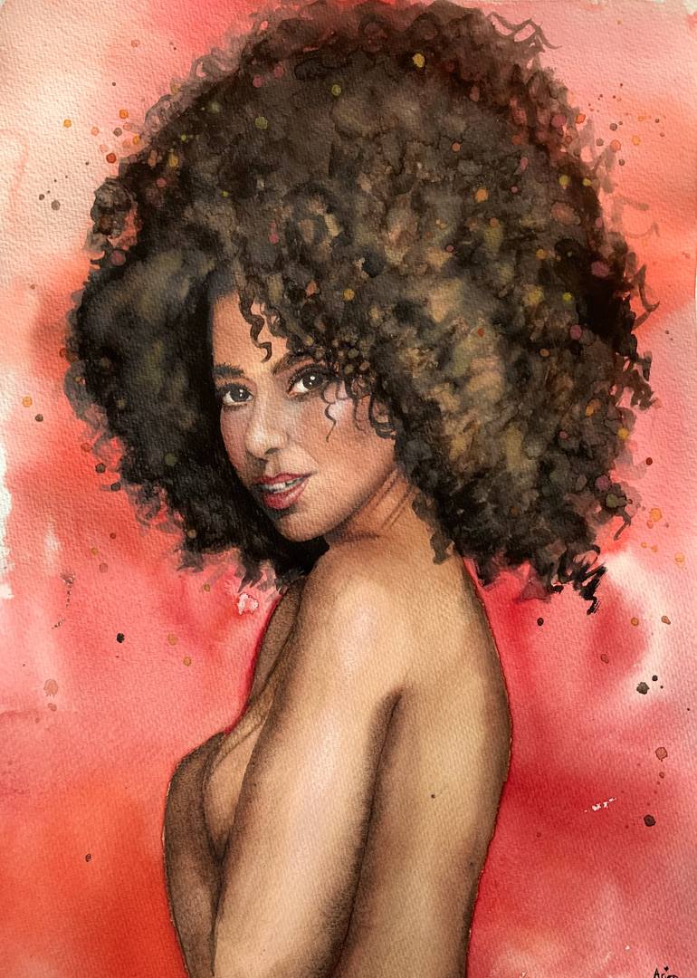 This piece is intended to radiate with the shy, brave, tentative beauty of a random Black, trans girl. Many cisgender people get too intrusive, wanting to see or discuss our bits, and asking which kinds we have, so I often like to both tempt the viewer with a glimpse, while also denying them the sig...