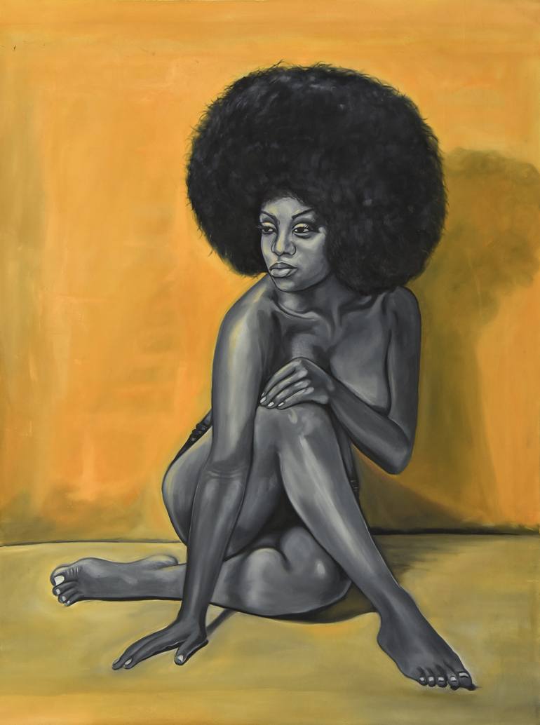 This is an artwork showcasing the beauty of a black woman, it speaks about the hidden glory and attractiveness about black and the uniqueness of black skin.