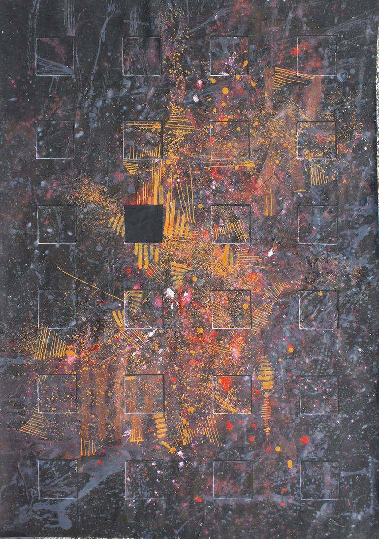 It is an abstract painting made on paper. I used black for a first layer and then slashed the other colors.