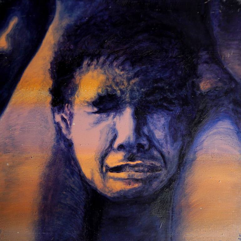 This painting is part of a tryptich featuring Daryl Hannah and Harrison Ford whilst fighting and struggeling for fife in the Classic Sci-Fi Film Noir movie "Blade Runner" by Ridley Scott. Here we see Deckard being tormented by Pris.