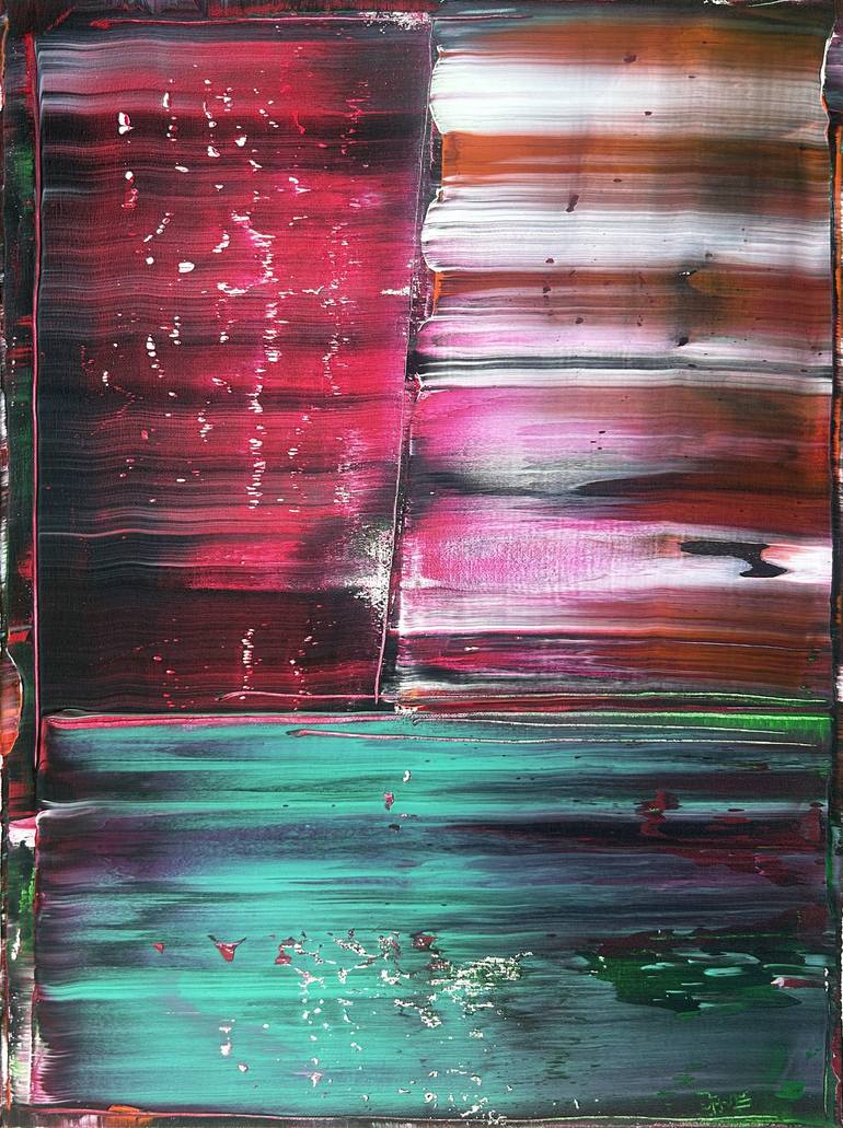 Original PMS Abstract Acrylic Painting On Canvas - 18" x 24" This is a unique modern PMS abstract acrylic painting that will make a small statement in your home or office. This painting is fierce, emotional, and full of mischievous love. The colors streak and overlap, while also being contrasted by...