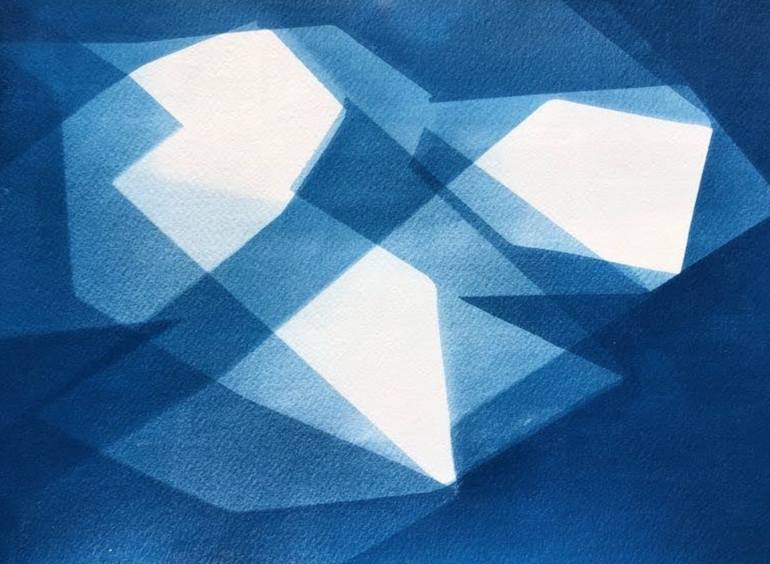 This work explores art produced by the sun, bringing life to the beauty of shadows. Inspired by historical architectural blueprint techniques, Kaufmann paints with cyanotype and creates the piece with sun and shadows from 3-dimensional objects. The art is created by the sun and time and then set wit...