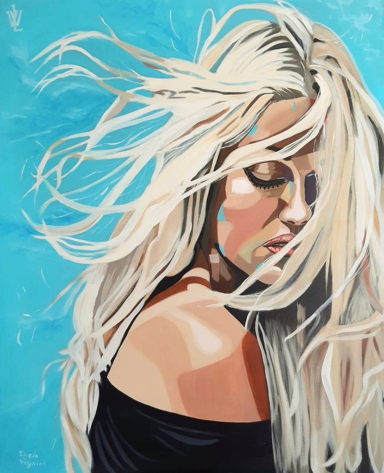 Beautiful young girl.Blond Woman Silhouette Modern art woman portrait.Large original painting in oil on canvas. Painted with brush. This picture will look beautiful in a living room, bedroom,dining room. The sides of the painting are painted. Size 39"×32" inches (100×80 cm). if you want to buy a ...