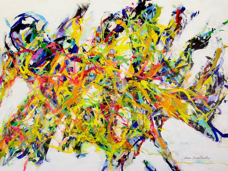 This painting was inspired by the wild sports play. He has translated the feelings he gets from the play to the canvas. This painting is varnished for UV protected and ready to hang.