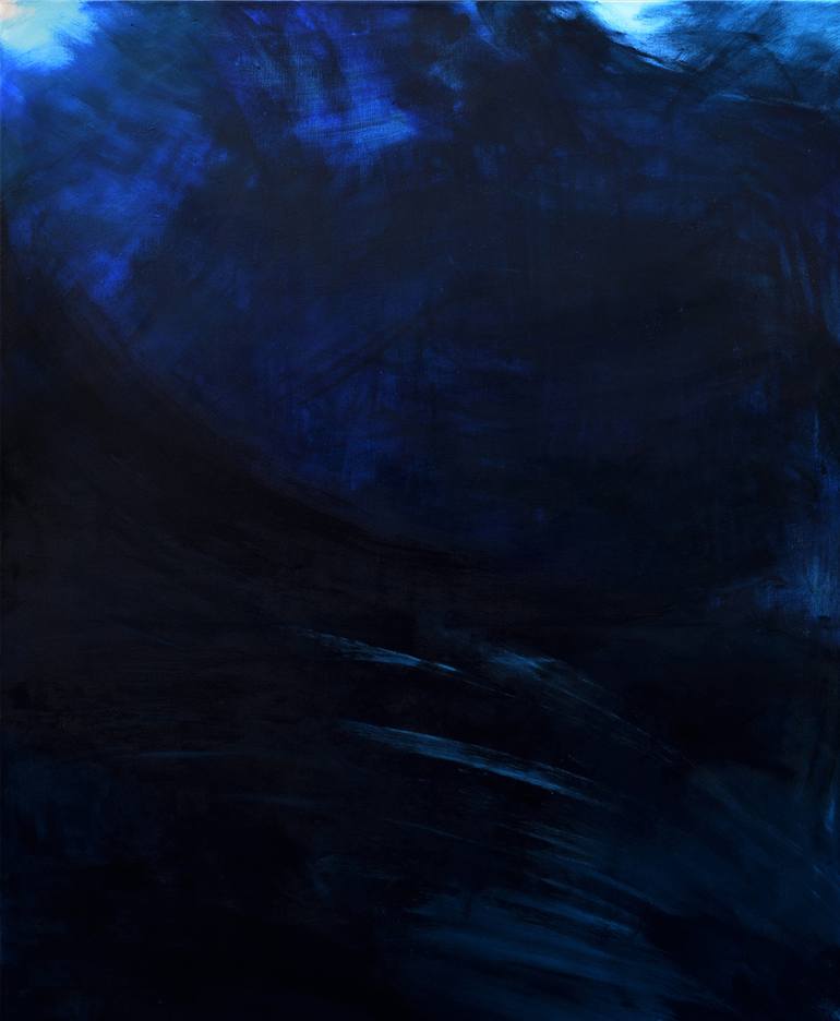 Orginal Dark Blue, Blue, White, Black abstract painting by Leon Grossmann Abstract painting. Original abstract art. 31,5 " width x 43,3" height x 1.6" depth. (80 cm Breite x 110 cm Höhe x 4 cm Keilrahmenstärke) It was painted with professional Acryl Colors. Paint on canvas. Stretched on a wooden ...