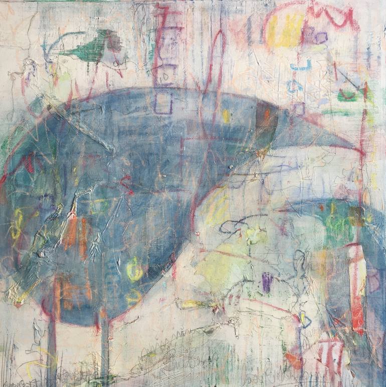 Finding my way with gestural marks in charcoal. Often reusing canvas, layering paint, oil crayons, pastels and graphite. Wiping, scraping or sanding back to reveal earlier layers. Intuition guides the process eventually finding pleasing shapes, texture and areas of interest that are highlighted b...