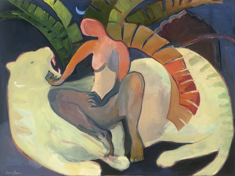 Ready to hang; The circular composition represents the cyclical nature of regeneration. The living beings in this paintings are vulnerable and interdependent and aware of the connections they share. The dream like colors and surrealist elements give it an other worldly feel. I've avoided figurative ...