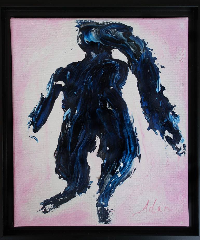 image updated 120124 - Another of my figure variations, this one, Blue Dancer 2023, is mostly if not all brush painted - vs line work. My intent was for dance like movement via thick mixes of pigment and heavy medium, with a contrasting pink softer texture glowing around him. Frankly I didn't know ...