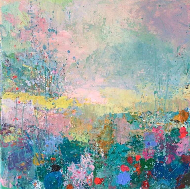 Sandy sells both portfolio work and creates substantial commissions for both private and corporate clients. Her work has also been published as fine art prints. Artists statement: I live and work in Kent, in the South-East of England. I work with landscapes, from which I draw my inspiration. The play of light and shadow, and the in-the-moment experience of absorbing the world around me inform my work. I am also drawn by my memories of a childhood spent outside, the visual impact and pleasure of that still resonates with me. I love colour and texture and in my work am always attempting to use these elements to create a harmonious balance. I enjoy working in an experimental way with different materials, I frequently throw paint at my canvas, and work with the canvas on the floor, dripping paint onto it. The spontaneity that gives me very valuable.