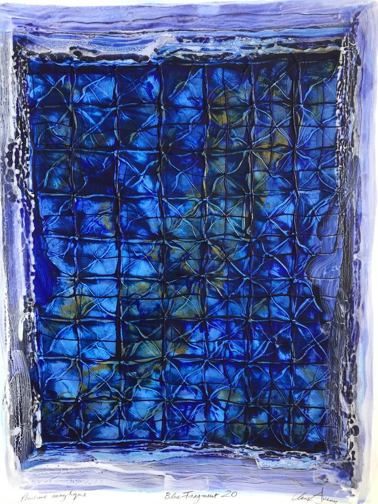 The painterly texture in shades of blue is inspired by museum visits and the displays of fragments of broken pottery and ceramics. These smithereens provoke questions as to what the whole piece would have looked like in its original state, who made it, where, why and for what purpose. This work evok...