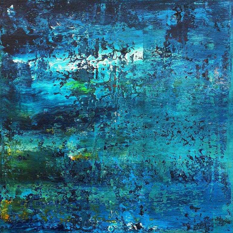 Original Blue, White, Grey, Black, Green abstract painting by Leon Grossmann Abstract painting. Original abstract art. 23,6 " width x 23,6" height x 1.6" depth. (60 cm Breite x 60 cm Höhe x 4 cm Keilrahmenstärke) It was painted with professional Acrylic Colors. Paint on canvas. Stretched on a w...