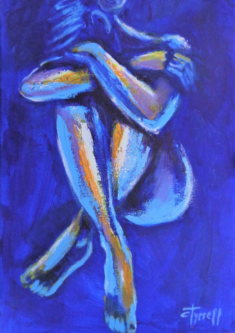Original contemporary figurative acrylics painting on canvas, painted edges and ready to hang. Frame is optional. Colourful and textured painting made with layers of blue,purple, teal and orange acrylics applied with the palette knife. Part of a new series "Blue Mood", semi-abstract nude figures in ...