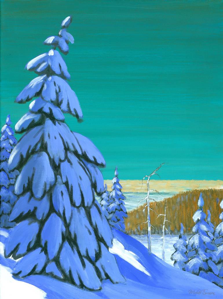 An avid skier in my youth, I loved the view from Blue Mountain overlooking the vast expanse of Ontario, Canada's Georgian Bay, a part of the Great Lakes. The crisp clear winter air and clean vibrant colours are a delight for any skier. I chose to paint this with Acrylic on canvas, for their brillian...