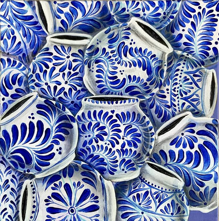 My love for BLUE is back in this new collection. This 30x30 acrylic on canvas piece is the perfect statement pieces for your space. ✨ Talavera pieces are intricately incorporated all over the canvas, adding a unique touch to each artwork.