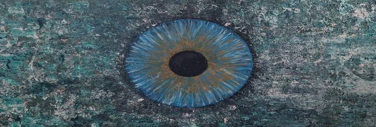 Unique painting of an eye pupil painted in my abstract way. In the painting, which is built up in various layers, different structures and materials have been incorporated.