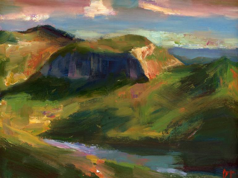 Blue Ridge is part of a series depicting vacations and leisure lifestyle.. I use subdued colors and loose brush strokes, as in most of my paintings, in order to create the mood and feel of spontaneity. Art buyers may see a symbolic reference to prominent 20th century American painters like George Be...