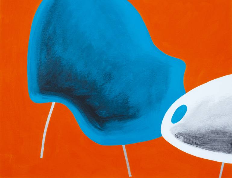 An abstract acrylic on watercolor paper. Inspired by the curves of mid-century modern furniture such as the Womb Chair designed by Eero Saarinen, simplified into a minimal composition. Signed, dated, and titled on the back, 1.5" paper white edge, unframed.