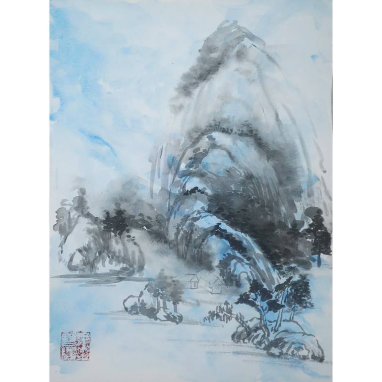 Original watercolor and Chinese ink brush painting on 140 lb Canson cold press paper, blending Eastern and Western techniques to achieve a unique, transcendent harmony.