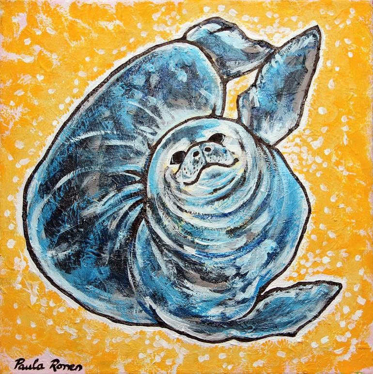 I like strong contrast; in this painting the blue (cold color) on a yellow canvas (warm color) gives a contrast that catch immediately the eye.