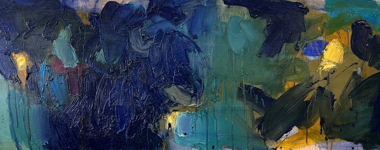 Inga Makarova’s Blue is an evocative journey into the world of abstraction, where rich tones of blue dominate the canvas, subtly punctuated by hints of green, yellow, and warm textures. The artwork, painted in 2019, is a testament to Makarova’s ability to convey depth and emotion through color and c...