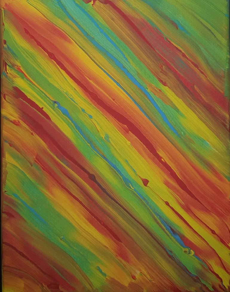 This is an abstract painting done in only 3 colors red, blue and yellow. The simplicity and the colors give it almost an Americana feel. It's bright and cheerful and is fun to look at. It's painted with acrylic paint on a canvas made to look textured.