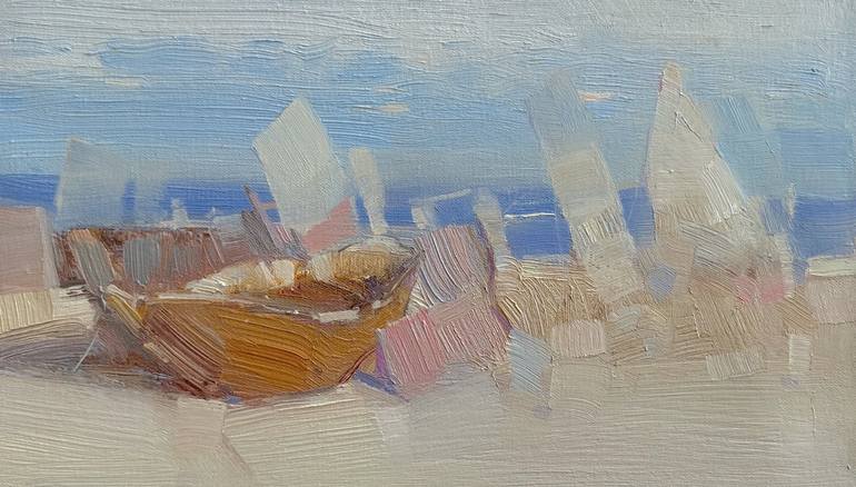 Artist: Vahe Yeremyan Work: Original oil painting, handmade artwork, one of a kind Medium: Oil on canvas Year: 2023 Style: Impressionism, Title: Boat, Size: 8.5" x 15" x 0.8'' inch, (22x38 x2 cm) Unframed, Stretched on Wooden Bar, Gallery Wrapped, Ready to Hang. Yeremyan is an Armenian nativ...