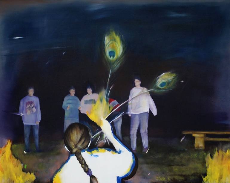 Karolina Zglobicka (b.1988) originally Polish, lives and works in Valencia, Spain. Moving from Poland to England and then to Spain, inspired her to explore the theme of relocation, changes that confront the familiarity of the space we live in, things left behind and those that adapt to travel with us continuously. In her recent paintings, Zglobicka examines the physicality and meaning of objects around us, placing them in a reminiscent set up, isolated and removed from natural surroundings just to glorify their influence on memories. She focuses on things we lose, misplace, get rid of, or treasure as souvenirs. Compositions presented on her paintings seem staged for performance, showcasing past events, everyday situations we witnessed, or those alternative ones that could have been, but never happened. Viewers of her work are invited to take part in an interplay between chosen objects, to feel the tension between selective memory and ubiquitous symbolism hidden behind figurative representation. Context of selected subject matter challenges the borders of familiarity and imagination we project onto what we see. Main inspiration comes from family photos, objects found on the streets of Valencia with their history to be rewritten by the artist, objects often utterly insignificant, collected pieces of everything that may create an allusive link between composition and essential nature of the memory they respond to. The way paint is applied on canvas lures the viewer into thinking about time. In attempts of both capturing its liquidity as well as revealing the consequences of allowing it to run freely. Repetition of layers and motifs, correlation of presented figures, disappearance of definite shapes and meanings, gives an artist a chance to experiment within the history of figurative painting and question boundaries of theoretical descriptions of practise.