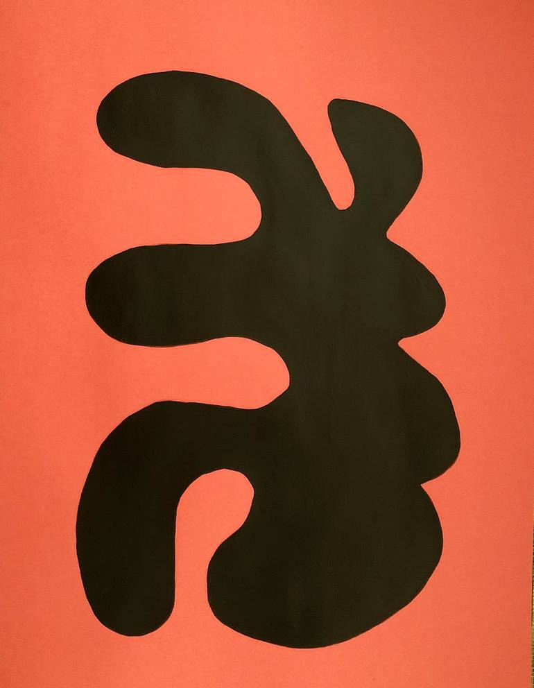 Painting. Paint on Paper part of a large series inspires by the shape of human and animal bones. Brown paint on Orange paper.