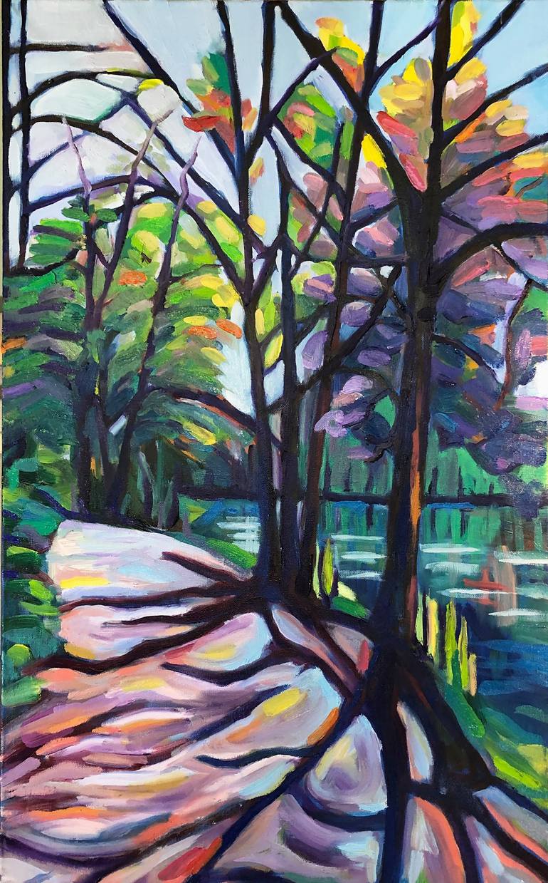Jennie painted this new impressionistic style with thick oil paint. She started to develop this new style in 2022 and this is the first of a series. Hiking through the woods, with the wonderful colors that are shining through the trees, you sometimes see all these colors for real. With a height of 7...