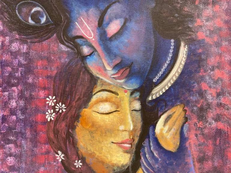 In this painting, two lovers are depicted resting their heads gently on each other, their hands tenderly intertwined. The scene is bathed in surreal pink and purple hues, creating a dreamlike atmosphere. The portrait captures a timeless moment of connection and peace, where their love feels eternal....