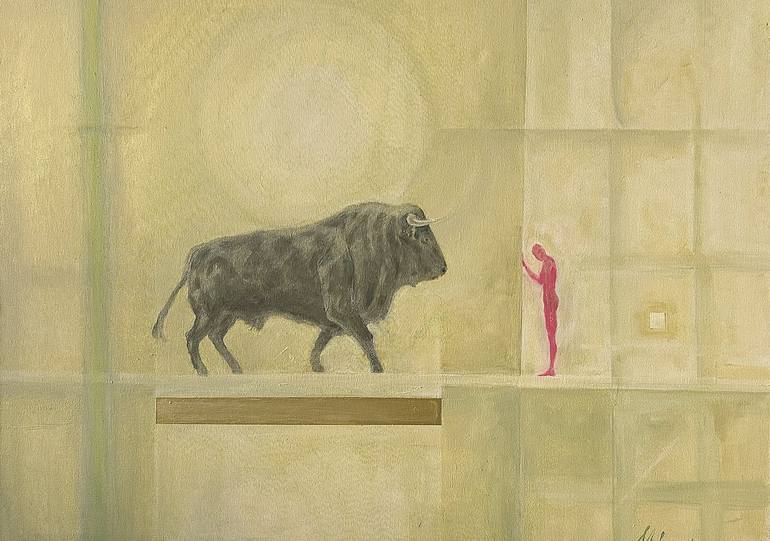 The canvas shows an urban construction, but at the same time it is a cave drawing. We are still largely in the cave of primitive warfare, but the awareness of the unity of all living things is manifested in humanity. The eternal plot of the interaction of man and animal, in the world and in man, whe...