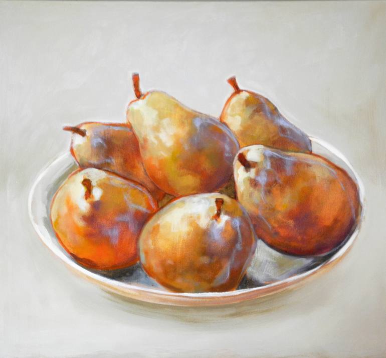 I've been painting still life works featuring simple arrangements of pears. I wanted to try a bowl of them to see what the complexities might be. I also love the work of Alberto Morandi. I like the stillness and the evenness of the light and tried to capture that in this painting.