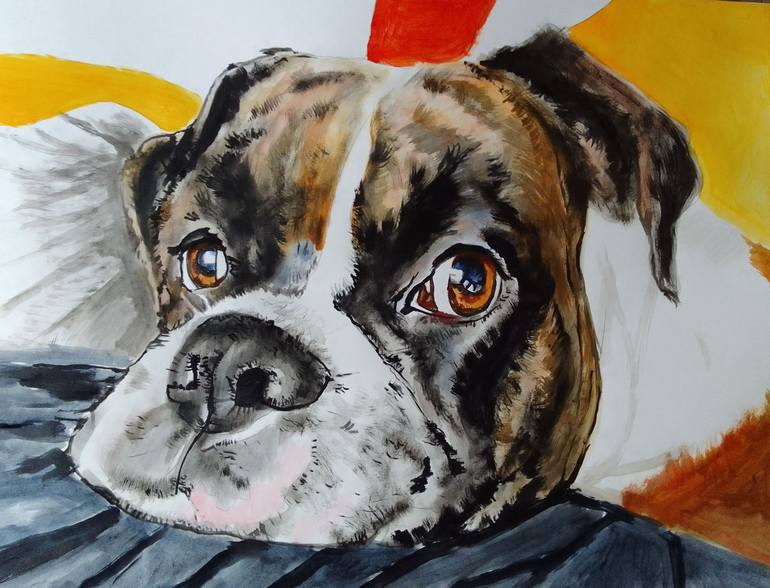 Boxerdog Acrylic on paper 60 x 84 cm By Soso Kumsiashvili 2022