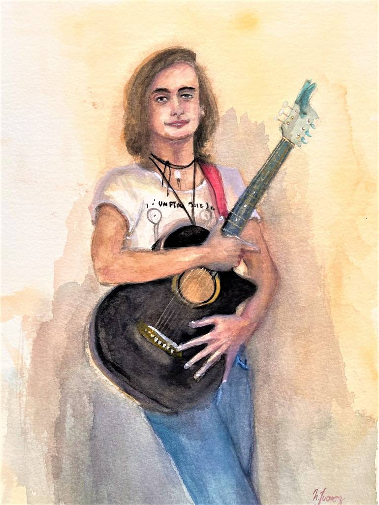 I choose watercolor, to explore this media on portraits. A boy at San Telmo Fair, has inspired me here.