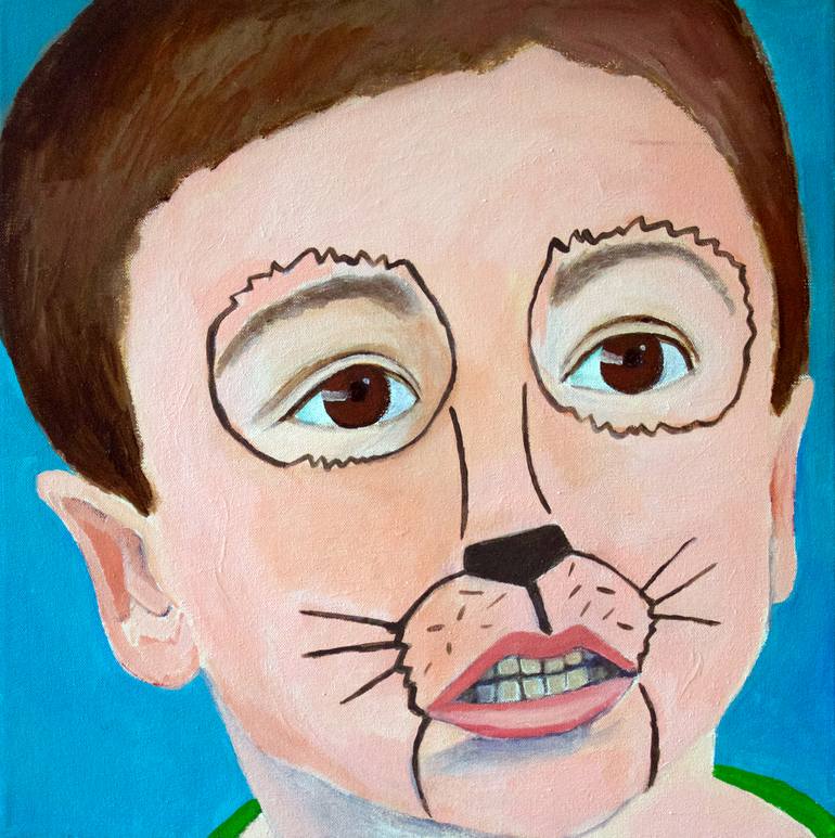 A young boy looking serious even though the painted face is playful. There is a light sensibility to the narrative. I've tried to capture the moment, but beyond the portrait, to tell a story.